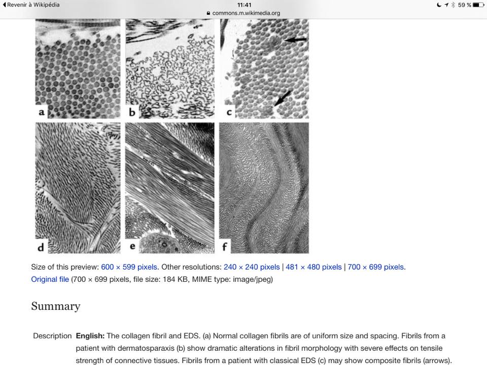 - Personnellement, je ne fais actuellement les biopsie de peau que lorsque les patients ont les signes et symptômes du SEDh mais ne sont pas ou plus hypermobile pour une raison ou une autre (arthrose, contractures musculaires diffuses, rétraction musculo-tendineuses réduisant l'amplitude articulaire, etc.), OU lorsque je suspecte un autre sous-type de SED que le SEDh : le SED Classique (+ avis génétique), le SED Vasculaire (+ avis génétique), le SED Cyphoscoliotique (+ avis génétique), ou encore le SED Arthrochalasique ou Dermatosparaxique (très rares, + avis génétique). On peut également voir des anomalies orientant vers une maladie mixte SED/Ostéogenèse Imparfaite (SED/OI).